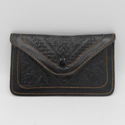 Esta cartera de piel, decorada con grabaciones florales y acolchada tiene el tamaño perfecto para llevarla siempre contigo.