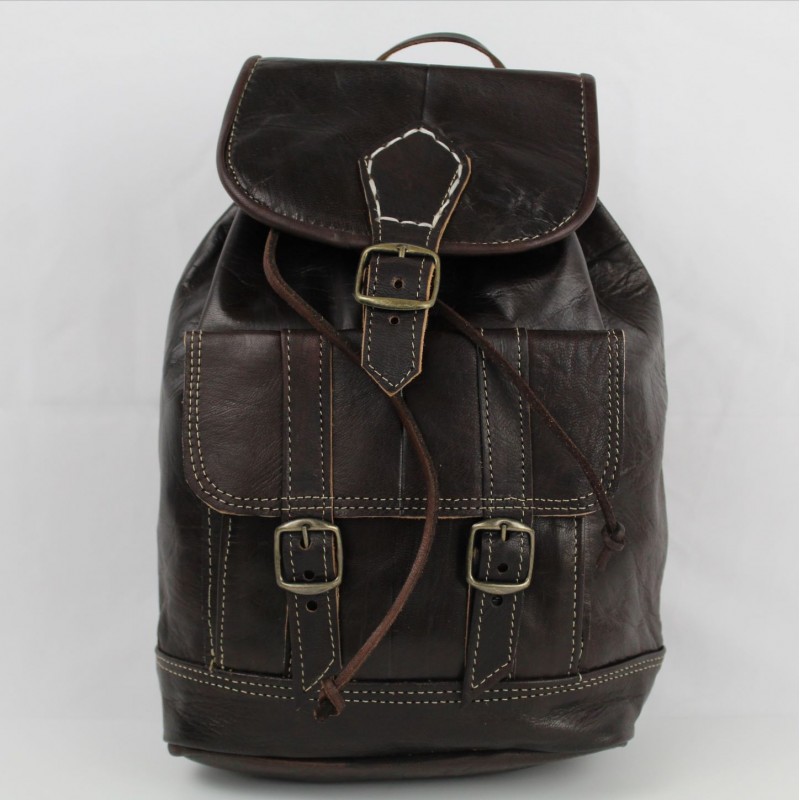 La mochila «Ainas» está hecha de cuero de cabra de gran calidad. Interior de forro de algodón. El modelo lleva un bolsillo en la parte delantera y otro en la parte trasera con cremallera. El cierre central es con una cuerda del mismo material de la mochila y con una hebilla para una máxima seguridad.